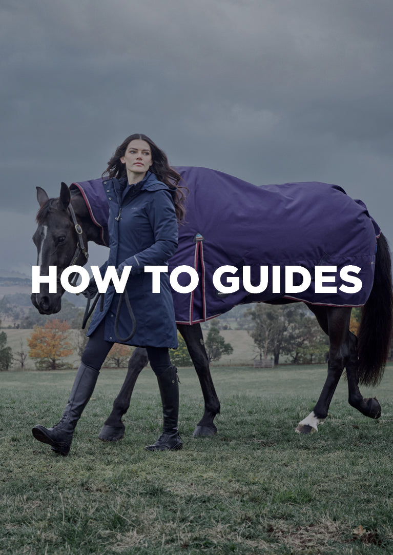 2. Once you have ascertained that the rug fits well around the neck, slide the rug into position along your horse's back so that the coat lies flat. If the seam between the tail flap and the rug sit below the top of the tail, the rug may be too big.